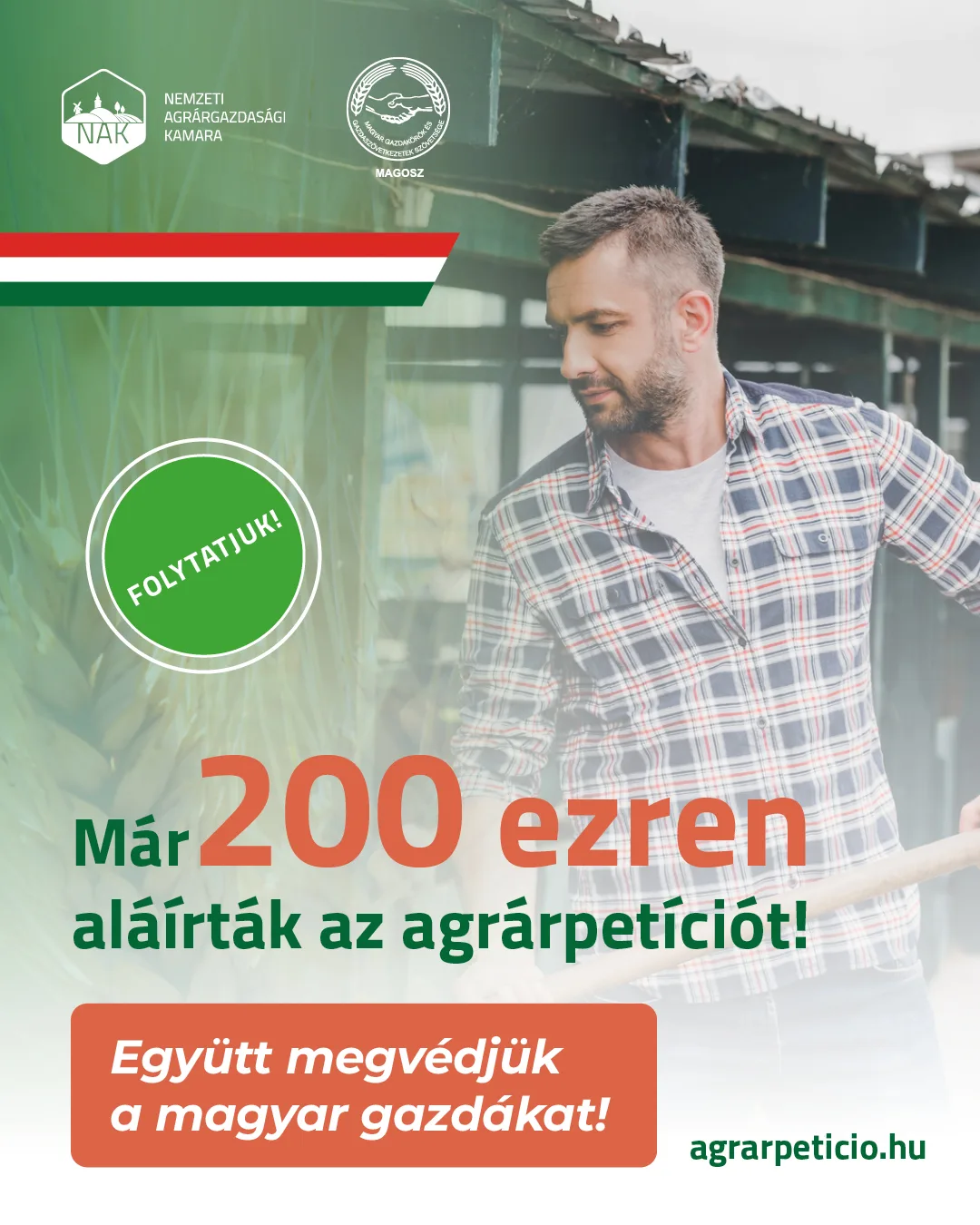A „Megvédjük a magyar földet! Megvédjük a magyar gazdákat!” címet viselő aláírásgyűjtéshez eddig több mint 200 ezren csatlakoztak – gazdálkodók és fogyasztók egyaránt.